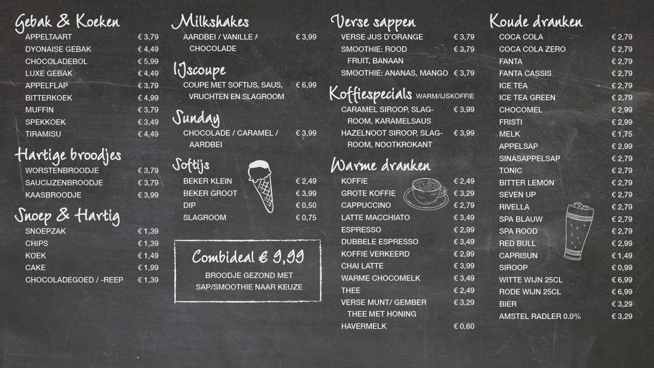 Heerlijk een goede kop koffie of thee met een gebakje. Gewoon omdat je het hebt verdiend! Ons aanbod van gebak wisselt regelmatig maar kan bestaan uit een chocoladebol met slagroomvulling, appeltaart, gevulde koek en Dyonaise gebak.
