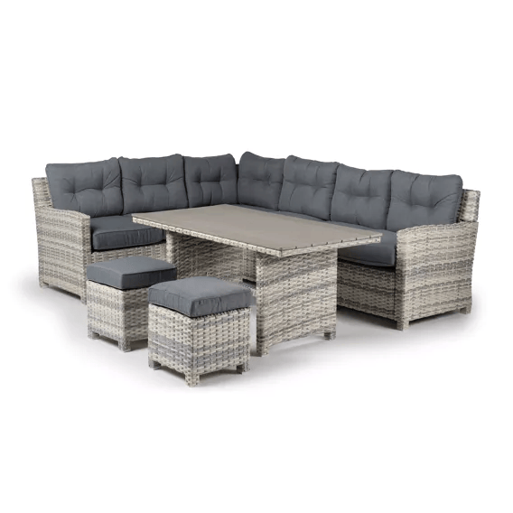 Ben je op zoek naar een mooie, maar ook functionele loungeset? Dan is de Artico hoekbank een echte aanrader. Deze set bestaat uit een hoekbank, twee hockers en een hoge tafel. Met deze lounge kun je niet alleen heerlijk relax genieten in je tuin, maar in combinatie met de hoge tafel ook nog eens uitgebreid tafelen.