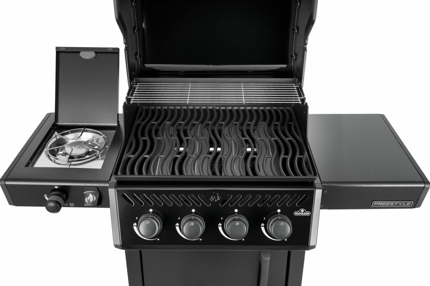 De Freestyle™ 425 propaangasbarbecue met aparte zijbrander is een compacte grill met premium functies en een onklopbare prijs. Met betrouwbare JETFIRE™-ontsteking waarmee de hoofdbranders probleemloos met een eigen, krachtige ontstekingsvlam worden aangestoken. Schroei het vlees perfect dicht boven de gietijzeren grillroosters met porseleincoating. Drie RVS branders bieden gelijkmatige warmte die eenvoudig geregeld kan worden en gecontroleerd met de ingebouwde thermometer. Bereid bijgerechten tijdens het grillen met de aparte zijbrander Dankzij de robuuste wielen kan deze barbecue overal naartoe worden gereden, waar hij maar nodig is, terwijl de eenvoudig inklapbare zijtafels met gereedschapshouders en flessenopener ervoor zorgen dat de Freestyle™ bij uw levensstijl en ruimte past.