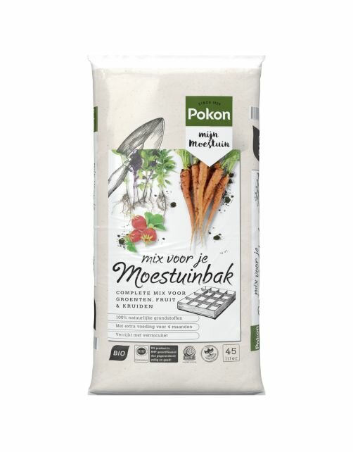 Deze rijke mix is speciaal ontwikkeld voor gebruik in moestuinbakken. De speciale samenstelling heeft een gunstig effect op de ontwikkeling van de plantjes in je moestuin. Door de compost en de vermiculiet gaat deze mix meerdere jaren mee zodat je niet jaarlijks al je grond in je bak moet vervangen, maar slechts hoeft aan te vullen. Bovendien heeft Pokon Bio Mix voor je Moestuinbak biologische voeding voor 120 dagen en bevat het Pokon Plantversterker.