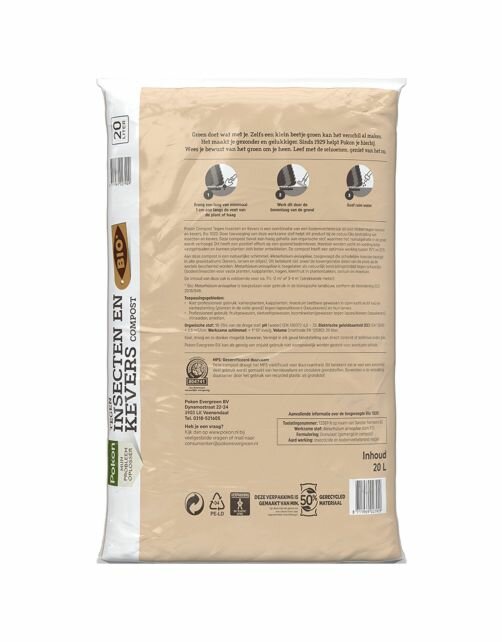 Pokon Tegen Insecten en Kevers Compost bestrijdt op een natuurlijke manier schadelijke insecten en kevers. Deze bijzondere compost bevat een hoog gehalte aan organische stof. Hiermee wordt het humusgehalte in de grond verhoogd. Dit heeft een positief effect op het bodemleven. Hierdoor worden vocht en voeding beter vastgehouden en kunnen planten zich beter ontwikkelen. De compost heeft een optimale werking tussen 15 en 30 graden Celsius.