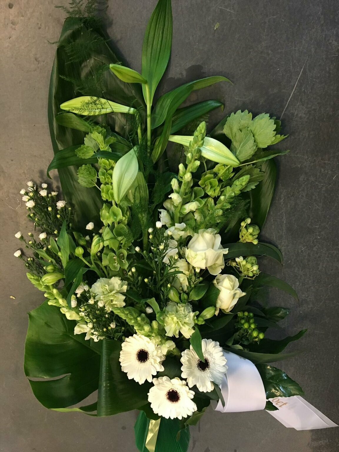 Dit rouwstuk wordt samengesteld en kan bestaan uit één bloemsoort of een combinatie van verschillende bloemen en kleuren. De afmetingen en prijzen vindt u hierboven. Heeft u specifieke wensen of wilt u een rouwstuk in een andere prijsklasse? Neem dan gerust contact met ons op, we helpen u graag verder.