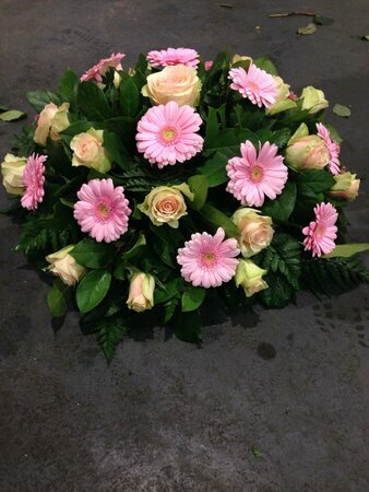 Dit rouwstuk wordt samengesteld en kan bestaan uit één bloemsoort of een combinatie van verschillende bloemen en kleuren. De afmetingen en prijzen vindt u hierboven. Heeft u specifieke wensen of wilt u een rouwstuk in een andere prijsklasse? Neem dan gerust contact met ons op, we helpen u graag verder.