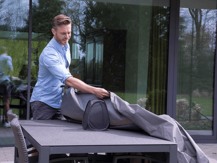 Let op: bij het gebruik van een hoes moeten de meubels goed droog zijn en kunnen ventileren. Hierdoor voorkom je dat de meubels beschadigd raken of gaan schimmelen door vocht.